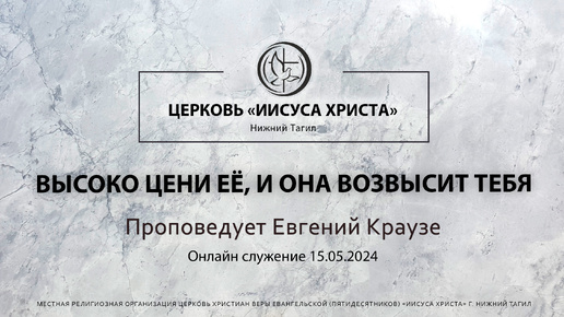 "ВЫСОКО ЦЕНИ ЕЁ, И ОНА ВОЗВЫСИТ ТЕБЯ" Проповедует Евгений Краузе | Онлайн служение 15.05.2024 |