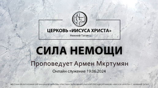 "СИЛА НЕМОЩИ" Проповедует Армен Мкртумян | Онлайн служение 19.06.2024 |