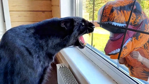 Реакция пантеры Луны на динозавра 😳😁🐆🦖