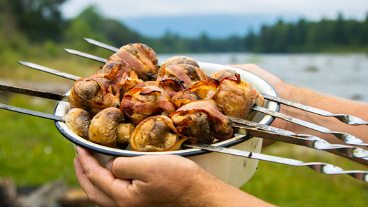 С такими грибами и мяса не надо! ШАМПИНЬОНЫ в беконе на мангале за несколько минут.