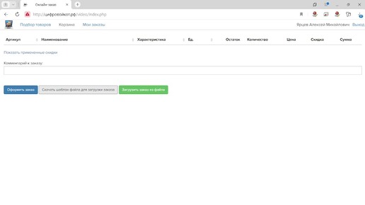Веб-портал 'Онлайн-заказ v2' для 1С. Загрузка товаров из xls