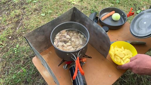 Грибной Суп.Насобирал грибов и сготовил в лесу.