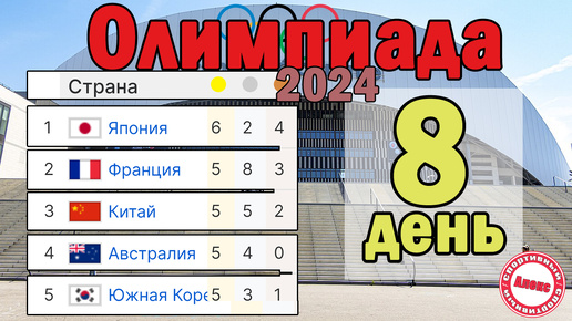 Олимпийские игры 2024. 8 День. Результаты. Медальный зачёт.