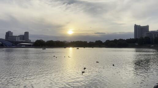 Закат на реке Свислочь и прекрасный вид на центр города Минск