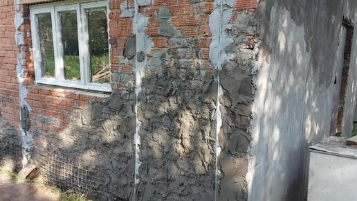 Штукатурю стены на даче.