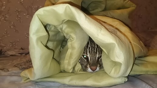 ДАЛЬНЕВОСТОЧЫНЙ КОТ ПРЯЧЕТСЯ ПОД ОДЕЯЛОМ\ У КОШКИ МЕНЯЮТСЯ ЗУБЫ