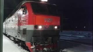 ЧС7-273 с поездом #147 'Кострома-Москва' отправляется. 29.12.2023.