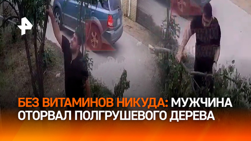 Мужчина сломал дерево, чтобы сорвать грушу. Кадры фруктового варварства из Краснодара