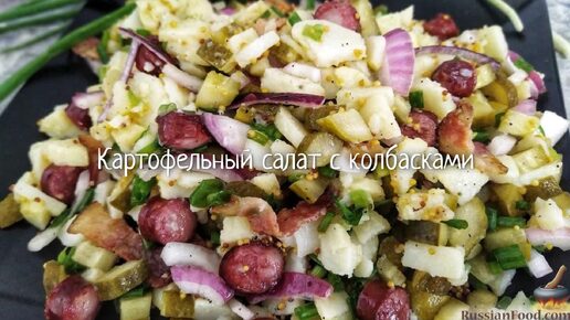 Ароматный и очень сытный. Картофельный салат с колбасками