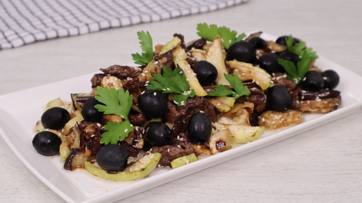 За такой салат гости хвалили без остановки! Невероятно вкусный теплый салат с говядиной, баклажанами и кабачками