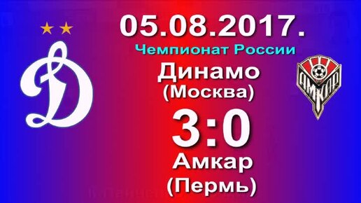 5 августа 2017 год. В этот день. Динамо (Москва) - Амкар (Пермь) 3:0. Чемпионат России