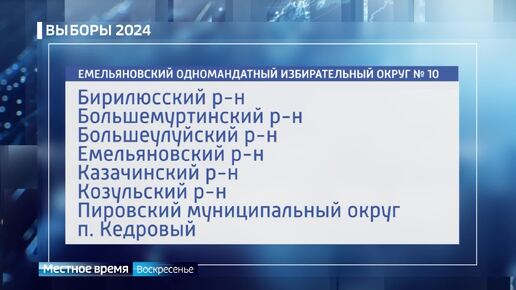 Местное время. Воскресенье: 8 сентября пройдут довыборы депутата Заксобрания края по Емельяновскому округу