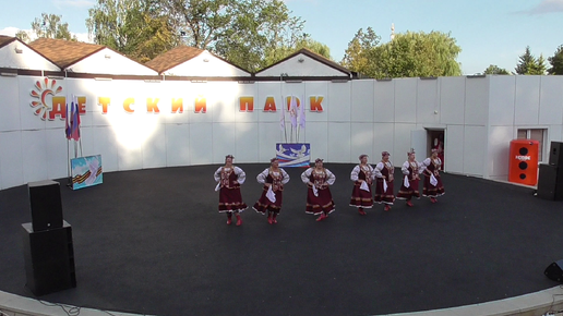 Женщины танцуют танец в парке. Детский парк, город Орёл