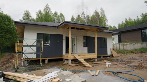 Готовность фасадной отделки и внутренних коммуникаций дома 120 кв.метров. С начала 0 цикла прошло чуть больше 1 месяца.