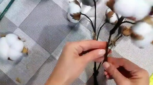 Веточки хлопка для букетов из фоамирана и синтепона. В титрах ролика ошибка - использую фоамиран.... а не фетр.