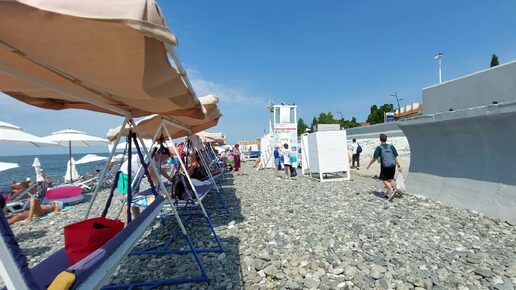 Самый загруженный пляж в Сириусе (Имеретинский курорт) вход где ресторан Магеллан