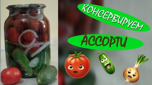 Консервируем маринованные помидоры, огурцы и лук в одной банке "АССОРТИ"