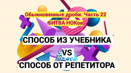 Дроби. Часть 22. Битва НОКов. Способ из учебника VS способ от репетитора