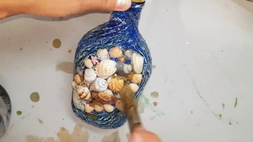 Куда девать ракушки? Украшу ими бутылку.