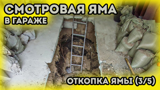 Смотровая яма в гараже. Гараж под автосервис. Откопка экскаватором и подготовка под армирование. Биби