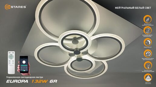2024 EUROPA 132W 6R + Синхронизация пульта. Люстра светодиодная потолочная с пультом от Estares.