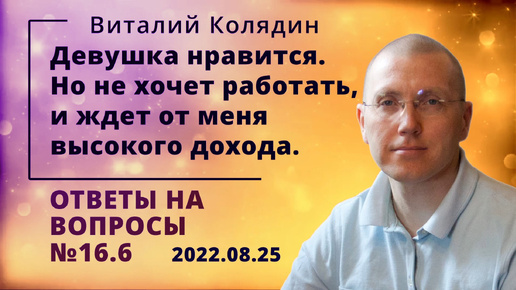 Ответы на вопросы №16.6. Девушка нравится. Но не хочет работать, и ждет от меня высокого дохода. Виталий Колядин. 2022.08.25