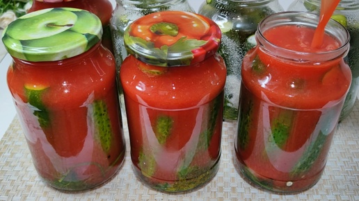 Огурцы в Томатном соке. Хрустящие отменный вкус