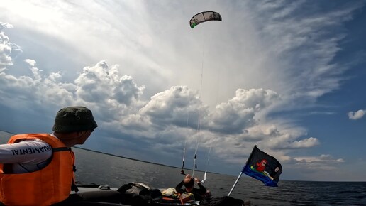 На моторке за кайтом