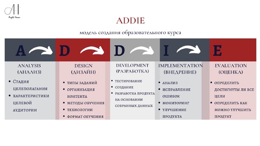 ADDIE - методологическая модель для создания образовательного проекта / курса