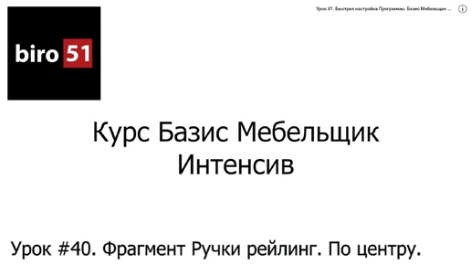 Урок 40. Фрагмент Ручки рейлинг. По центру. Базис Мебельщик Онлайн 2023. Интенсивный курс.