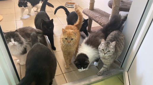 Заглянули в вольер "стриженных спинок" - новая шерсть уверенно нарастает😊 Как думаете: сколько кошек можно заводить без ущерба для всех❓