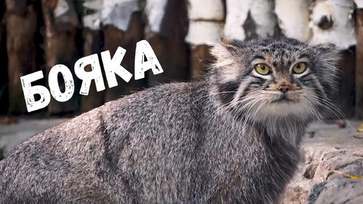 Манул Снежинка приводит себя в порядок, но остаётся начеку. Новосибирский зоопарк
