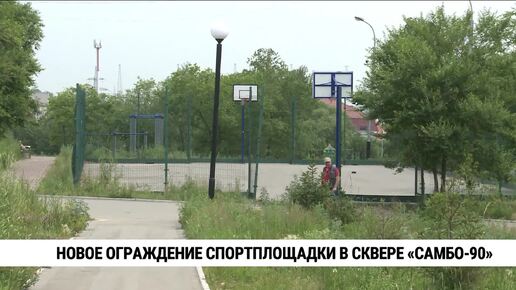 Новое ограждение монтируют на спортплощадке в сквере «Самбо-90» в Хабаровске