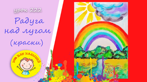 Как нарисовать РАДУГУ НАД ЛУГОМ. УРОК 222.Тема: "радуга над лугом"- краски, цветные карандаши