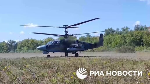 Боевая работа экипажа вертолета Ка-52. Кадры ударов по технике ВСУ в курском приграничье