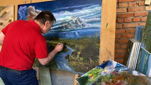 3-эт.Гроза, Харачоевсквя башня, Чеченская Республика маслом на холсте 100 на 150 см Зилавди Яшуркаев