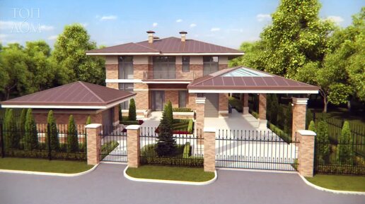 Проект кирпичного дома с гаражом в КП Madison Park 🧱 Общая площадь 500 м² 🏠 Двухэтажный коттедж – проектирование и строительство под ключ