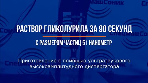 Ультразвуковой диспергатор- раствор гликолурила за 90 секунд с размером частиц 51 нанометр