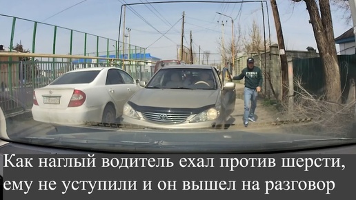 Как наглый водитель ехал против шерсти, ему не уступили и он вышел на разговор