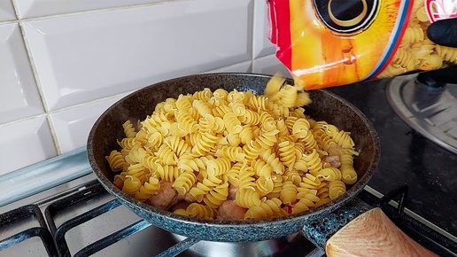 Быстрый ужин из макарон и свинины