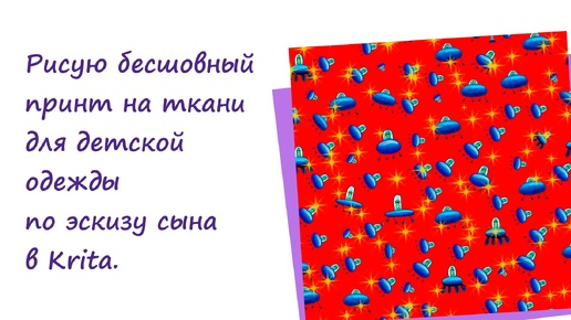 Рисую бесшовный принт на ткани в Krita по эскизу сына для его детской одежды.