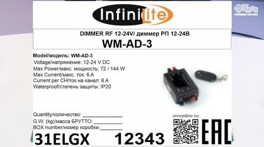 Диммер Infinilite WM AD 3 с пультом ДУ