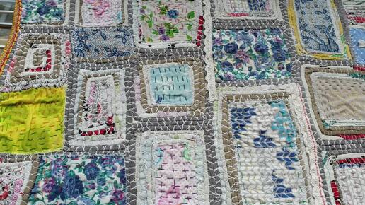 Коврик из старых вещей и остатков ткани после стирки и эксплуатации