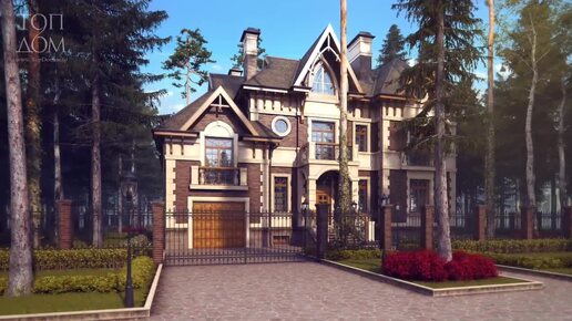 Проект двухэтажного дома с мансардой 🏘️ Общая площадь 580 м² ⚡ Загородный коттедж по ключ в стиле шале