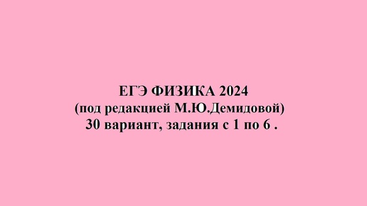 ЕГЭ ФИЗИКА 2024 (под реакцией М. Ю. Демидовой) 30 вариант, задания с 1 по 6.