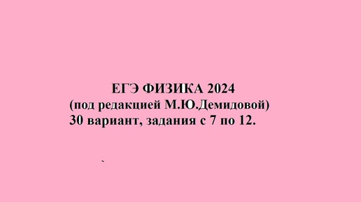 ЕГЭ ФИЗИКА 2024 (под реакцией М Ю. Демидовой) 30 вариант, задания с 7 по 12.