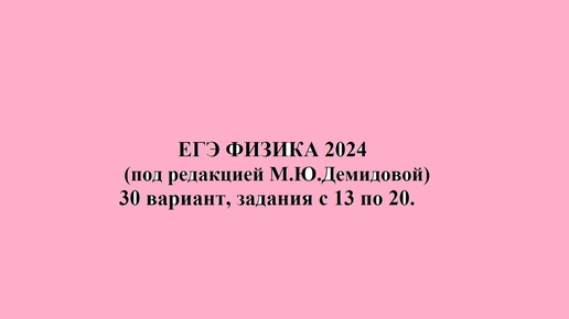 ЕГЭ ФИЗИКА 2024 (под реакцией М. Ю. Демидовой) 30 вариант, задания с 13 по 20.