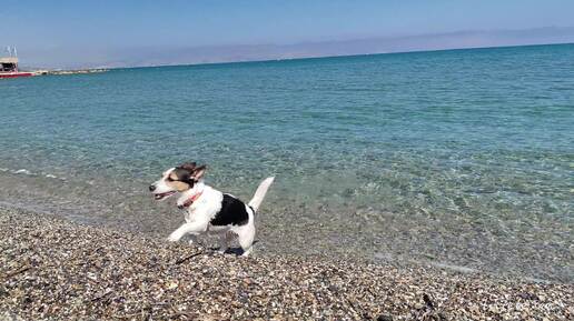 Джек Рассел Терьер радуется морю