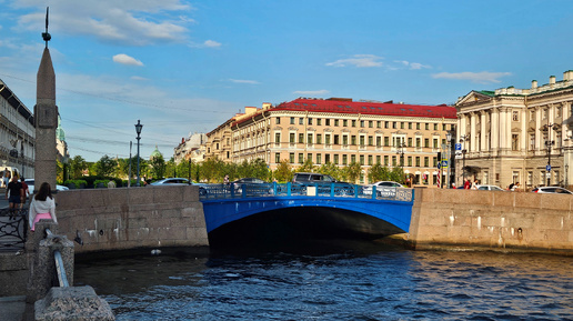 Синий мост через реку Мойку в Санкт-Петербурге и сад-трансформер на нём