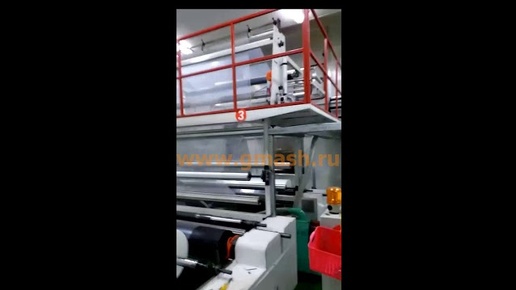 Работа пленочного экструдера для производства трехслойной пленки 2600мм шириной